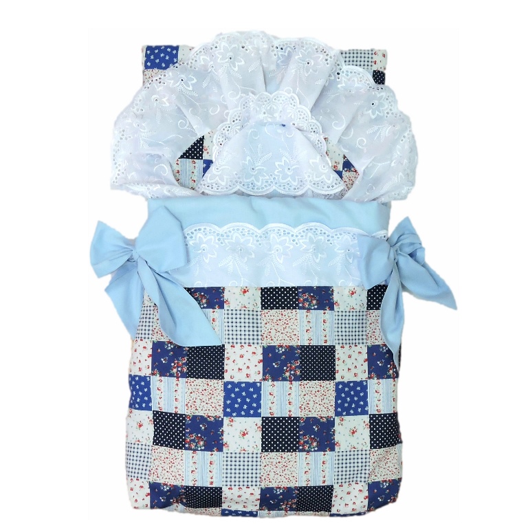 Комплект в стиле <<пейчворк>>, украшенный очень красивым хлопковым кружевом: