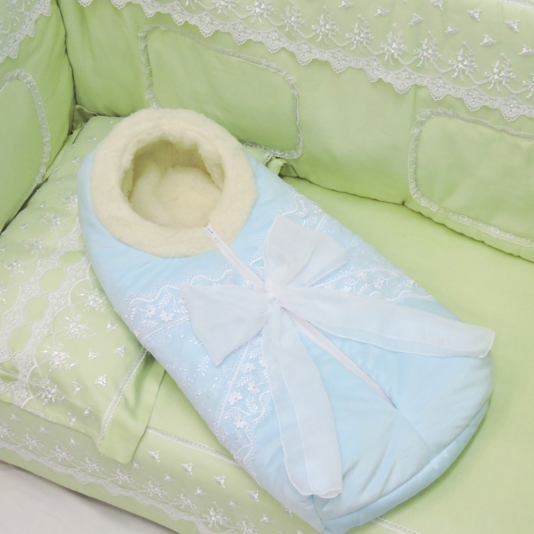 Невероятно торжественный конверт: из мягкого вельбоа, с отделкой кружевом, органзой и воздушным бантом. Но не только, ведь он еще и удобный - на молнии посередине, легко собирать малыша на прогулку. И очень теплый, на овчине и двухслойном синтепоне - замерзнуть просто не возможно! Оттенки очень нежные.