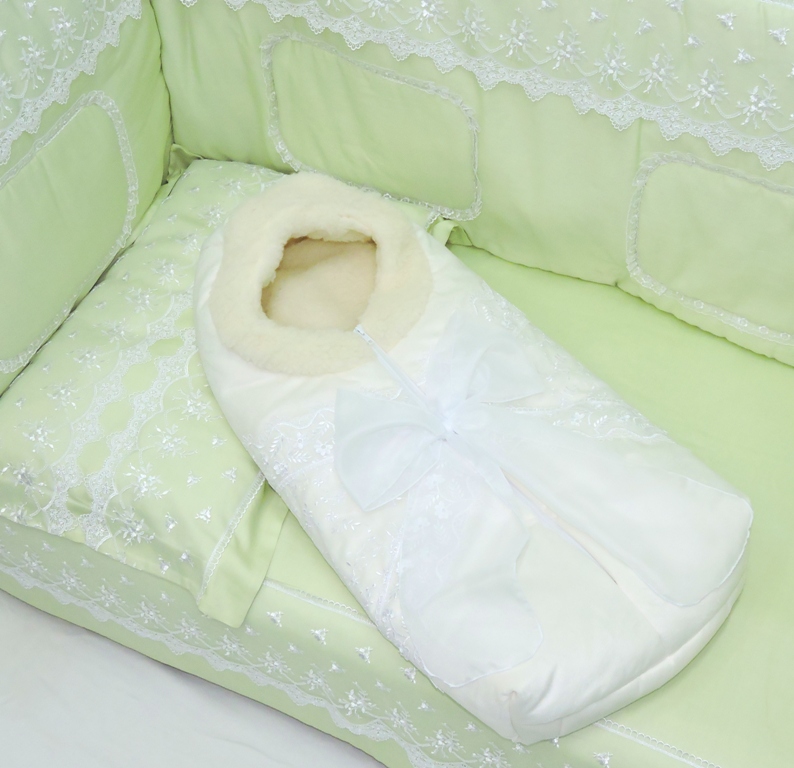 Невероятно торжественный конверт: из мягкого вельбоа, с отделкой кружевом, органзой и воздушным бантом. Но не только, ведь он еще и удобный - на молнии посередине, легко собирать малыша на прогулку. И очень теплый, на овчине и двухслойном синтепоне - замерзнуть просто не возможно! Оттенки очень нежные.