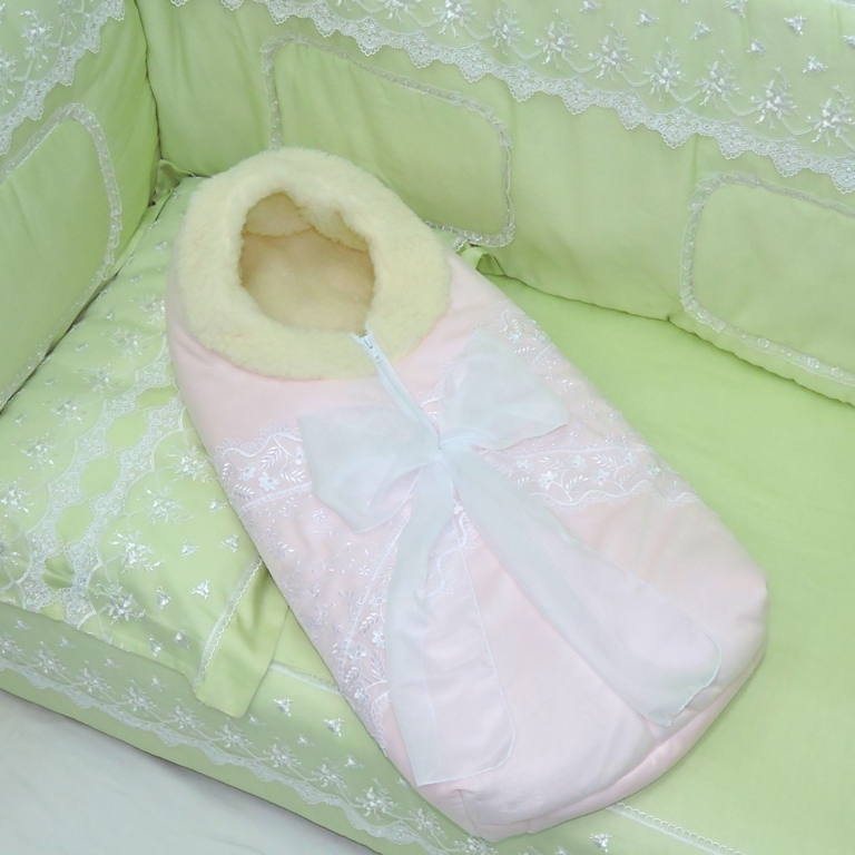 Невероятно торжественный конверт: из мягкого вельбоа, с отделкой кружевом, органзой и воздушным бантом. Но не только, ведь он еще и удобный - на молнии посередине, легко собирать малыша на прогулку. И очень теплый, на овчине и двухслойном синтепоне - замерзнуть просто не возможно! Оттенки очень нежные.